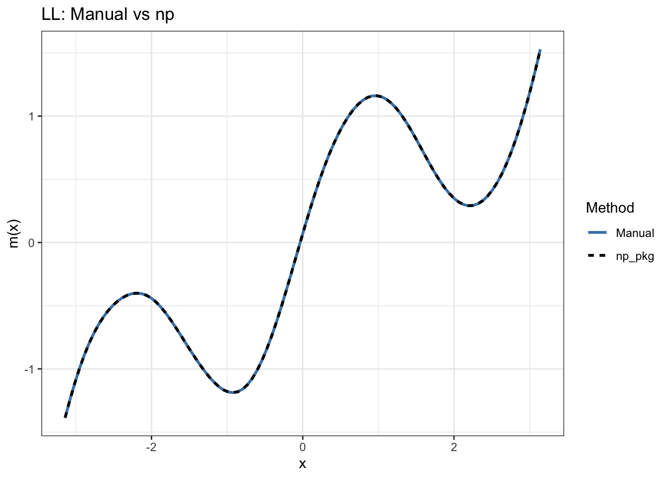 labs(title = "LL: Manual vs np", x = "x", y = "m(x)") +